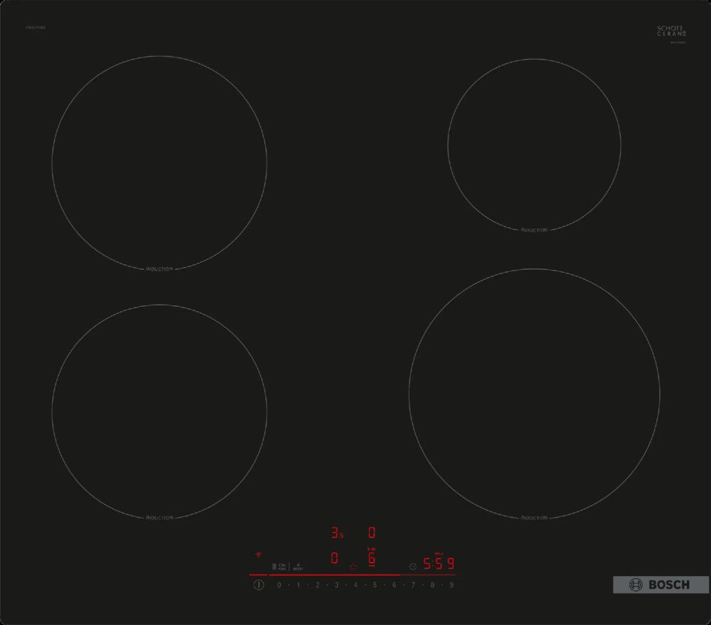 Tempi di Consegna 7-14 gg lavorativi Bosch PIE61RHB1E 6 Piano cottura a induzione cm. 59 - vetroceramica nero